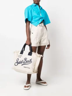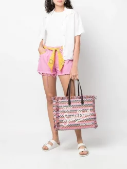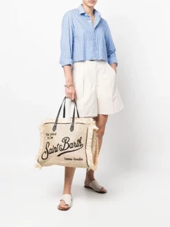 ( Neue Saison ) MC2 Saint Barth 02070B WHITE MULTICOLOR Gehäkelter Victoria Shopper Damen
