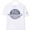 Runder Ausschnitt, kurze Ärmel, gerader Saum. Material: Baumwolle.