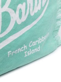 Ausgefranste Kanten, Logo-Print vorne, runde Henkel, Reißverschluss oben, Innentasche mit Reißverschluss. Material: Baumwolle.