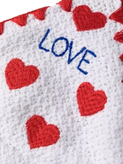 Leah knitted bikini top from MC2 SAINT BARTH featuring white, knitted construction, heart motif, halterneck tie fastening and triangle shape. Be mindful to try on swimwear over your own garments..