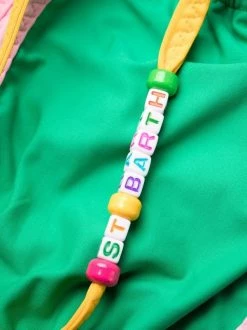 Pink, Grün, Gelb, Stretch-Design, Colour-Block-Optik, Perlen-Logo, Neckholder hinten, Clipverschluss hinten. Swimwear kann nur über Ihrer eigenen Unterwäsche anprobiert werden. Taucherbrille und Schnorchel sind optional….