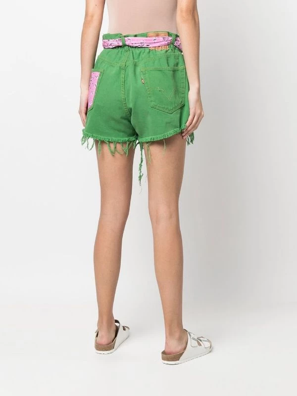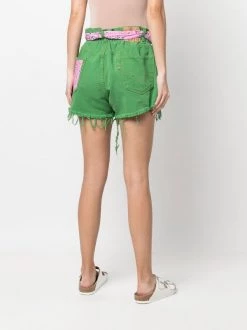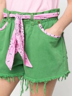 Apfelgrün, Baumwolle, Zierband mit Paisley-Print, ausgefranste Details, Gürtelschlaufen, oberschenkellang, Five-Pocket-Design.