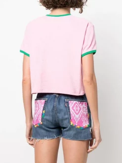 Grün, Baumwollgemisch, Logo-Stickerei an der Brust, Kontrastrand, runder Ausschnitt, kurze Ärmel, gerader Saum.